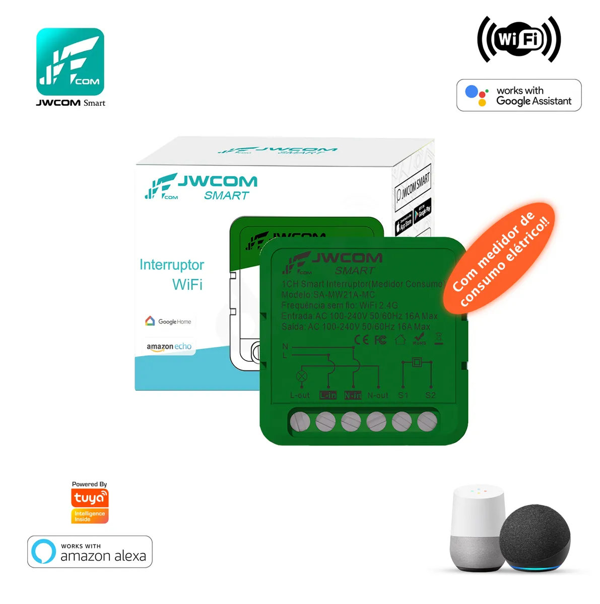 SMART SWITCH MINI COM MEDIDOR DE CONSUMO DE ENERGIA