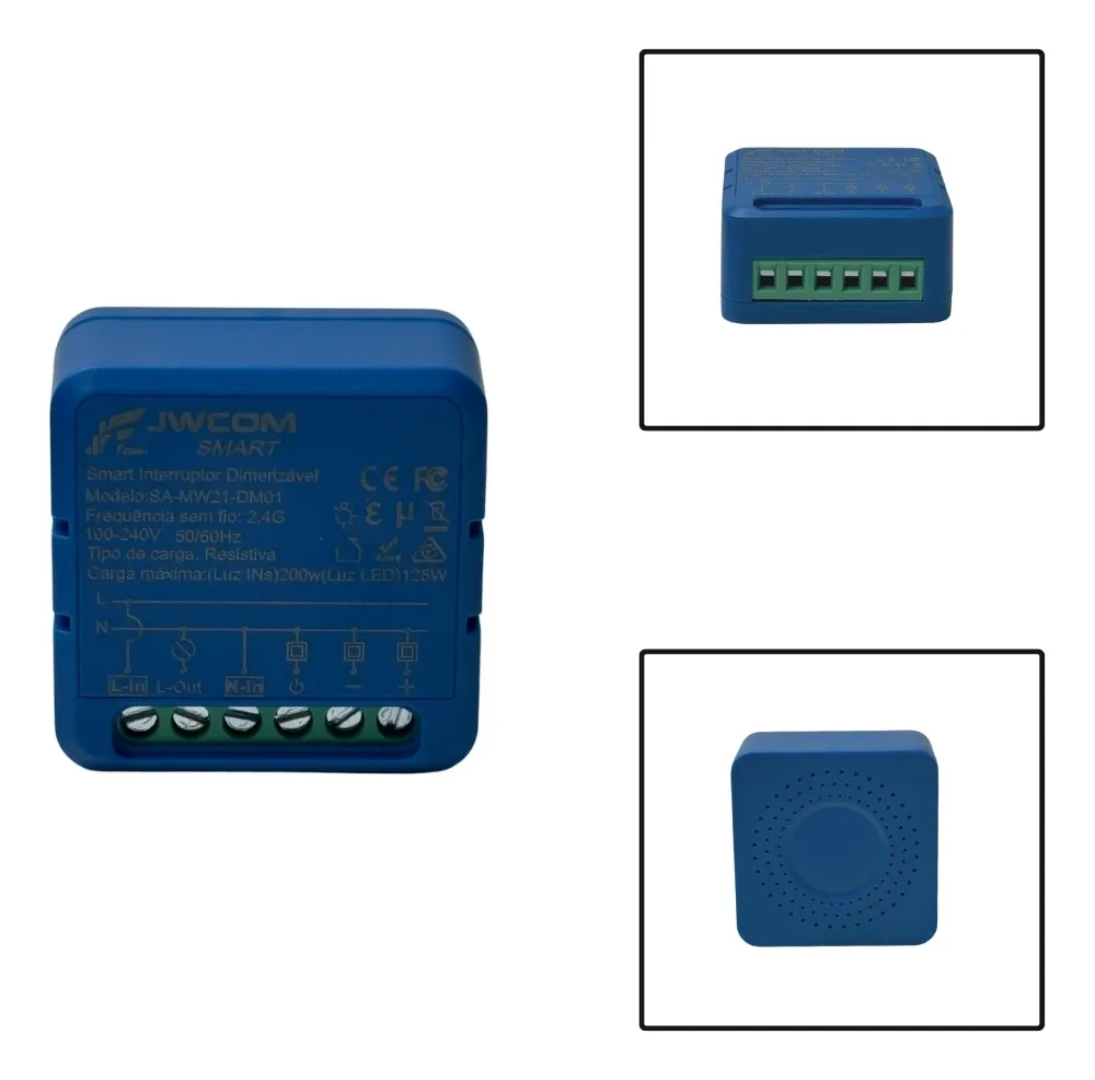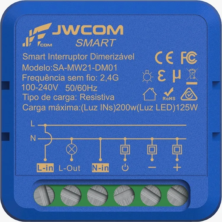 Permite acender, apagar e ajustar a intensidade das luzes através do aplicativo JWcom Smart, disponível para iOS e Android, ou usando comandos de voz com assistentes virtuais.